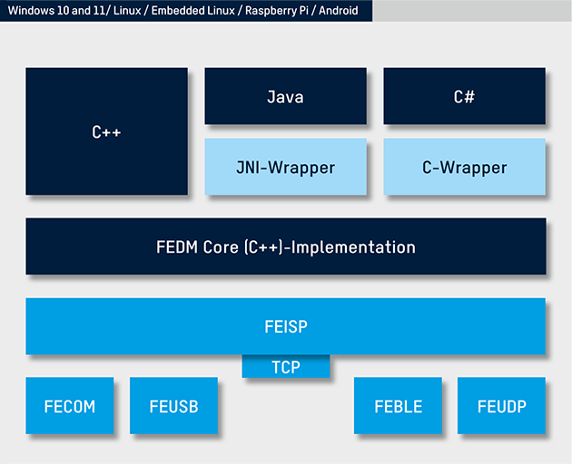 A well-structured API that is identical for different programming languages facilitates the interaction of different FEIG readers and operating systems.