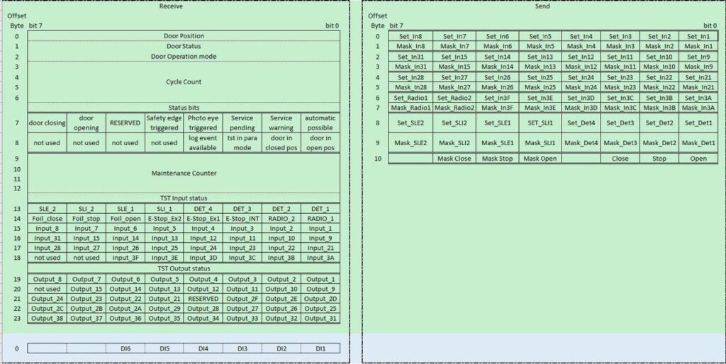 The following data is exchanged between the PLC and the door control:
