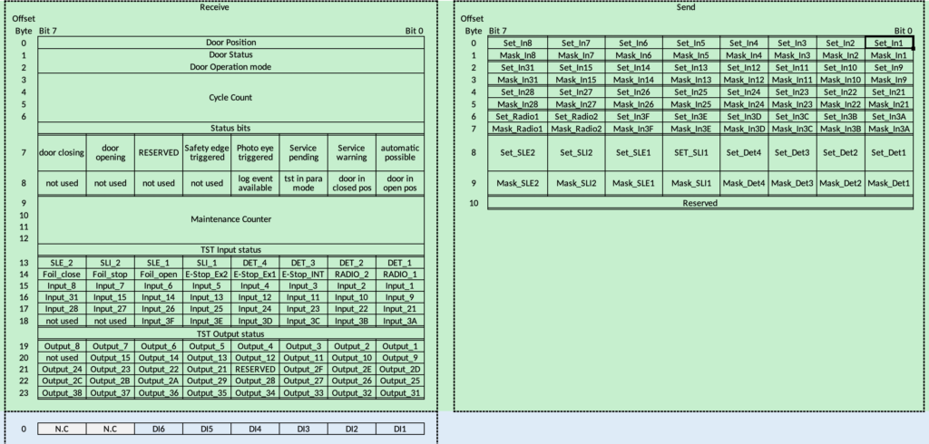 The following data is exchanged between the PLC and the door control: